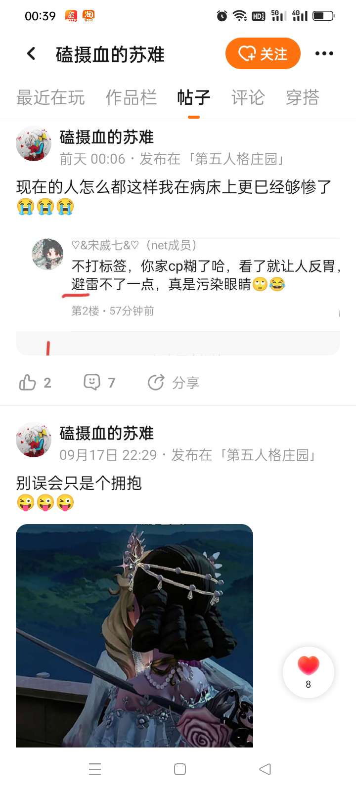 我真搞不懂了,你在病床上和我什么关系?有必要特意强调一下吗?你是真会卖惨,我巨雷这对拉郎cp,而且我也是经常翻游戏圈的人,让我避雷,你连标签都没打,看的我是真难受,怎么的?难不成你不让我翻游戏圈?大妹子,麻烦打标签,你这样真让人看不惯,都提醒过你了,又发了个帖子,不知道在表明什么🙄