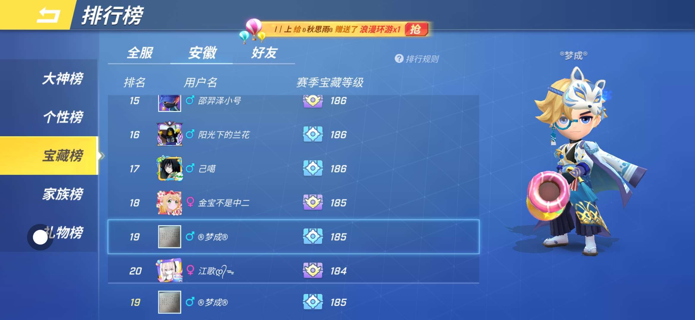 B206690085.宝藏榜第605名。全服605名。安徽榜第19名。乱斗单挑数着100花梅花愿者来