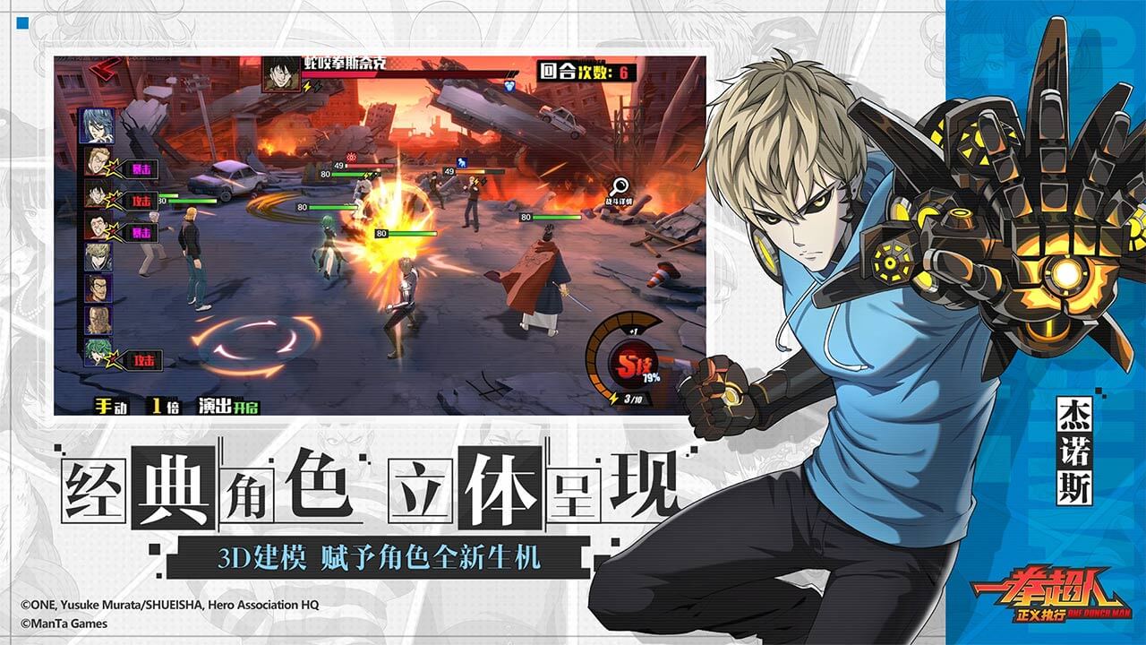 由ONE和村田雄介创作的超人气漫画《一拳超人》正版授权,完美还原动画剧情,让你亲身体验到热血沸腾的英雄战斗!