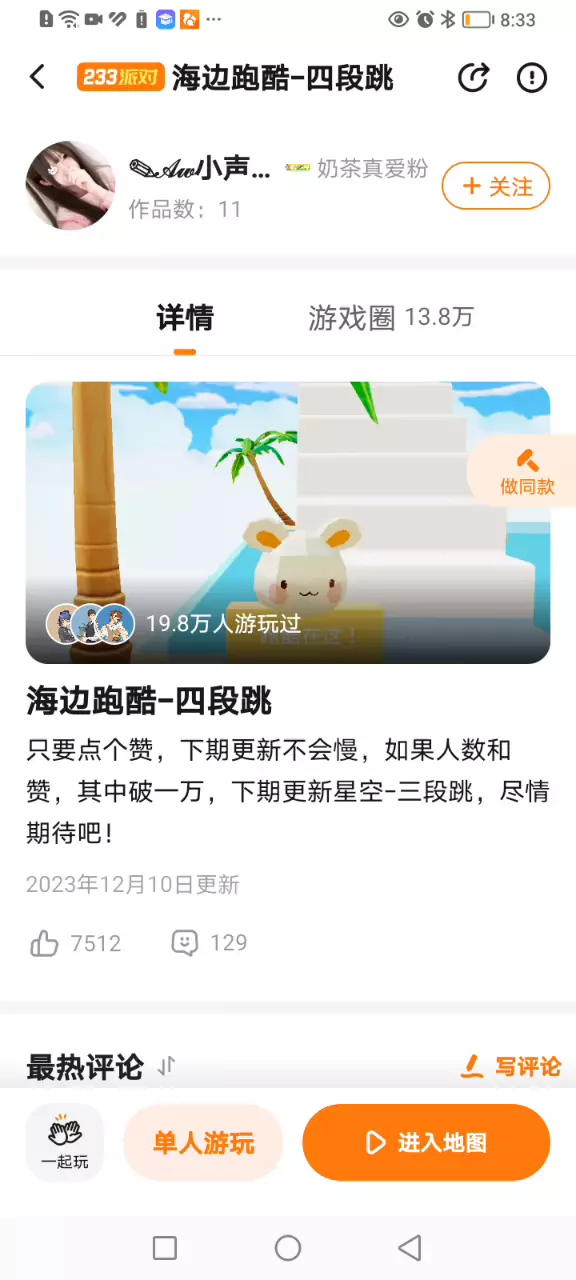 打卡蝴蝶跑酷,ID,目前还不知道#可以问作者,作者是胡辣