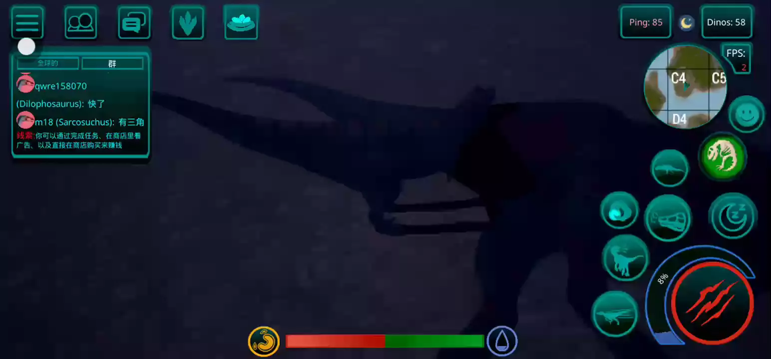 【更新:修复错误,提高稳定性】 恐龙岛是一款以侏罗纪世界为背景的逼真在线恐龙模拟器。 享受各种恐龙、逼真的图形和岛屿大地图。 选择你的恐龙并开始生存。 与您的朋友以及世界各地的玩家一起玩。 游戏中呈现了所有流行的恐龙,例如,从霸王龙、棘龙等食肉动物开始,到三角龙、甲龙等食草动物,游戏中有超过 23 种恐龙,包括飞行和游泳物种,以及所有恐龙。他们中的一些人在逼真的恐龙模拟器游戏中等待着您。