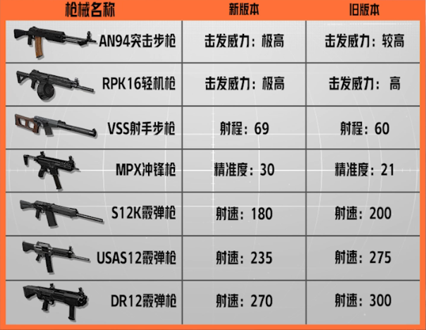 另外,部分武器的数值属性也进行了调整,具体调整可参考下图,啊猫也不多做赘述了。