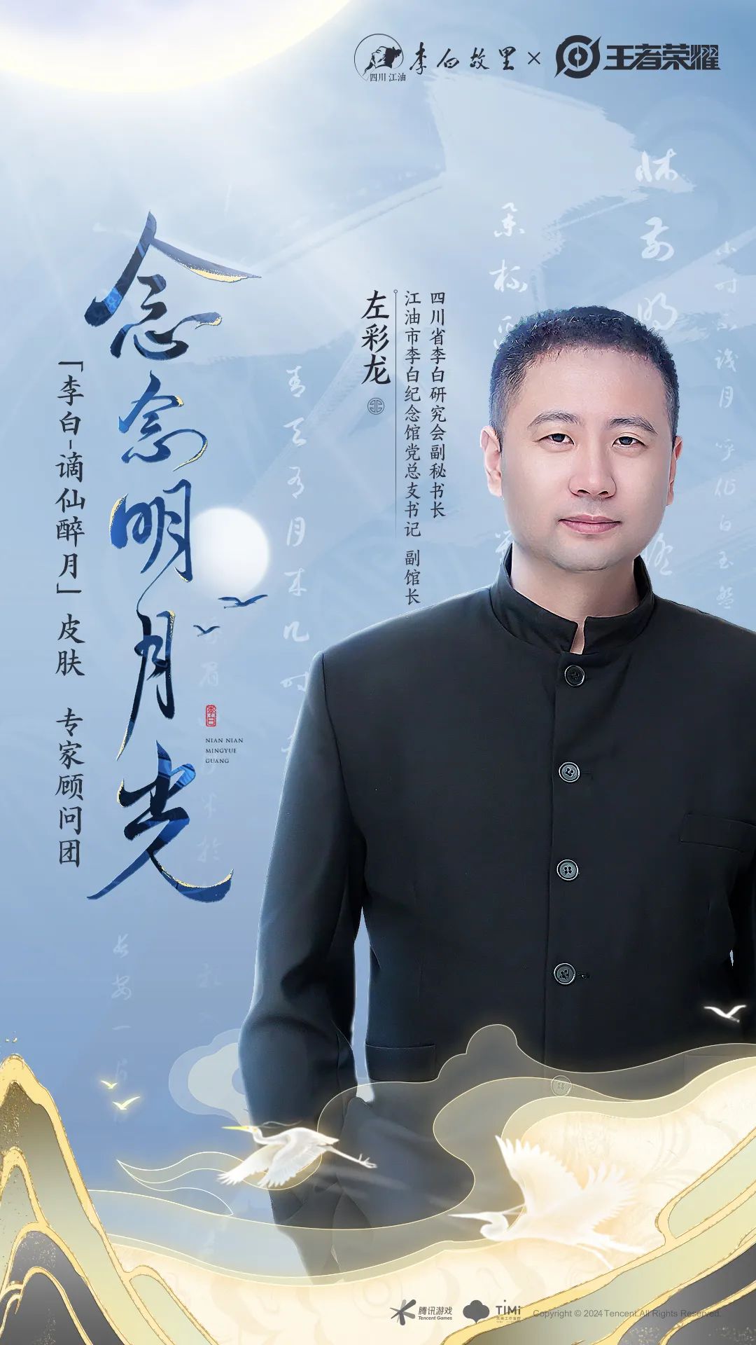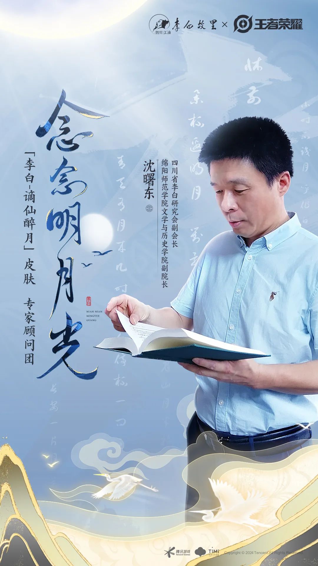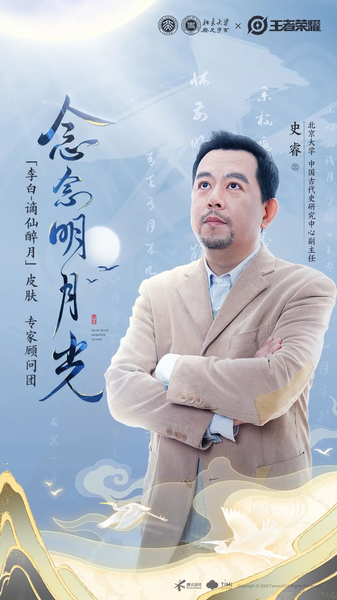 在此次李白新皮肤的设计中,王者荣耀携手北京大学历史学系、李白故里-四川江油,邀请了三位老师作为李白新皮肤专家顾问团,参与研发设计共创中 ——