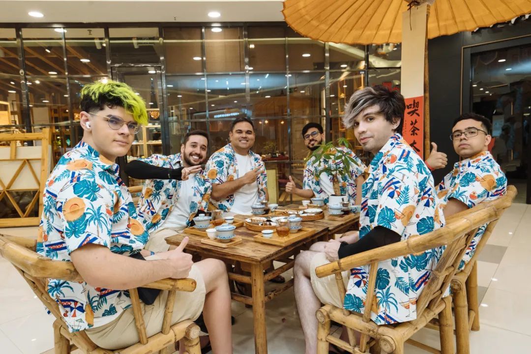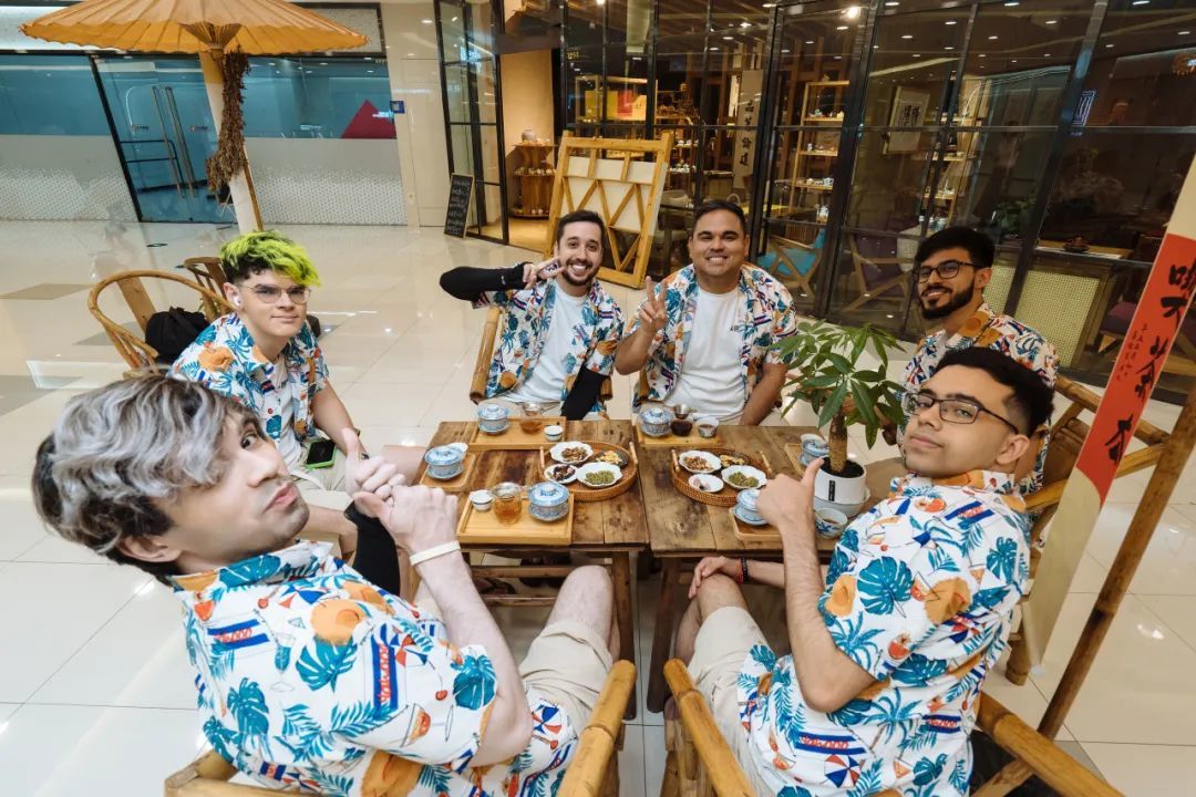 来自巴西的WCP战队来到了茶楼体验成都的茶文化,看起来他们非常享受这种悠闲的生活氛围~