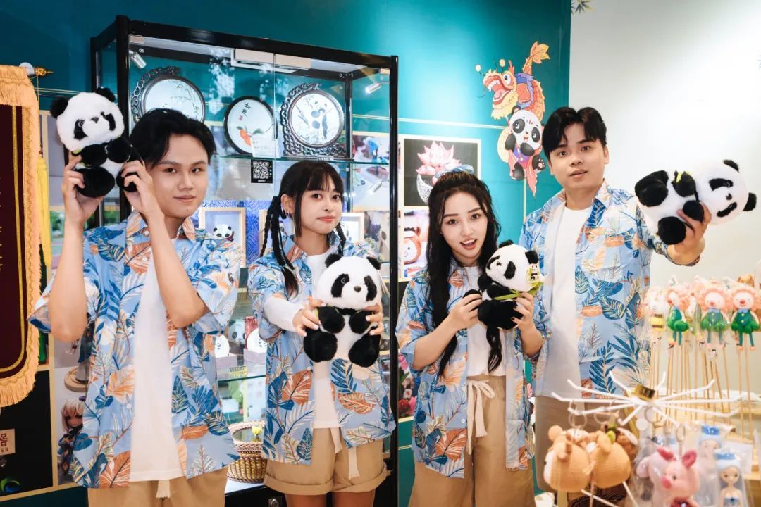 来自越南的VNS战队成员来到成都体验当地的文化创意馆,对可爱的大熊猫公仔爱不释手~