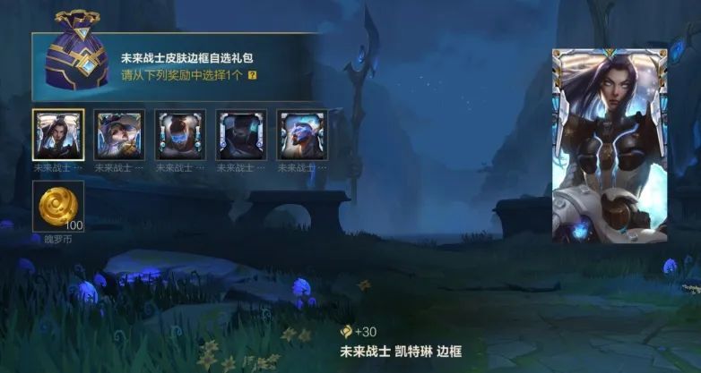 即日起至10月3日23:59分,未来战士皮肤边框自选礼包限时出售!召唤师使用300点券购入礼包,即可从中任选一款喜欢的皮肤边框带走噢,礼包内包含皮肤边框-未来战士 凯特琳、皮肤边框-未来战士 菲奥娜、皮肤边框-未来战士 卢锡安、皮肤边框-未来战士 慎、皮肤边框-未来战士 潘森共5款,还有魄罗币*100好礼可供挑选~
