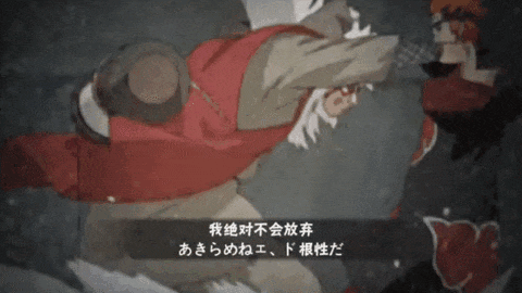 自来也前往雨隐村刺探情报时遭遇了佩恩,因缺少情报而在战斗中逐渐落入下风,最终被佩恩用黑棒贯穿身体并击落水底而牺牲。但自来也在心脏停止跳动的情况下,凭借毅力驱动着身体,在深作仙人身上留下暗号,将关键情报传回了木叶。