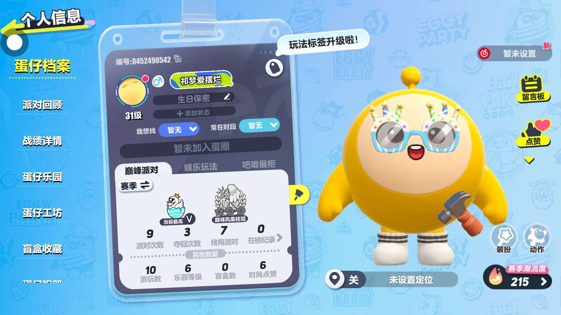 请报上蛋仔名和年龄还有段位