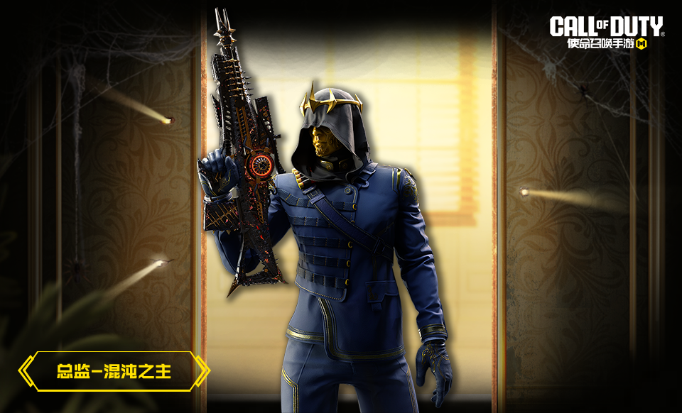 总监-混沌之主化身为混沌世界的主人,准备掌控一切力量,给予敌人致命一击。即使佩戴上金黄色面具,也难掩他严肃而又骇人的神情。他身穿带有金色线条和精致雕花的制服,简易的头巾上是代表着权威和荣誉的金色王冠。他的出现便是胜利的绝唱,他誓要在混沌世界中谱写自己的秩序。