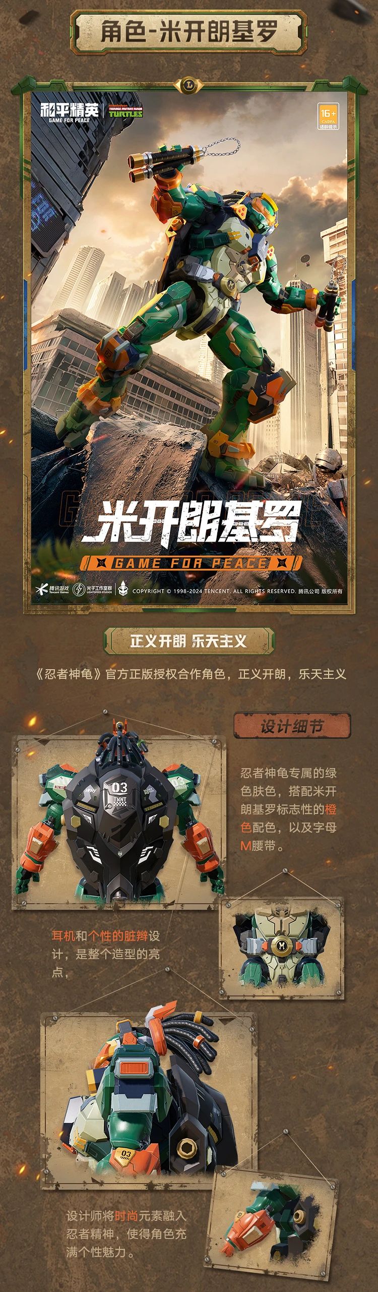 乐观幽默的米开朗基罗,如同橙色活力之泉,双截棍飞旋,灵动展露无遗!