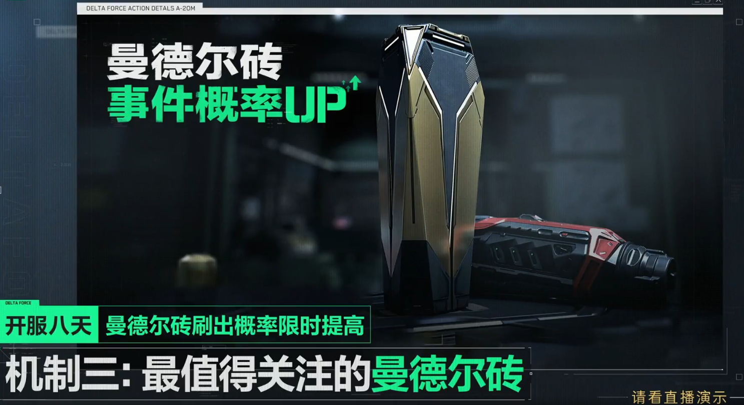 游戏开服前8天,【烽火地带】模式中的“曼德尔砖”刷出概率还会限时提高。