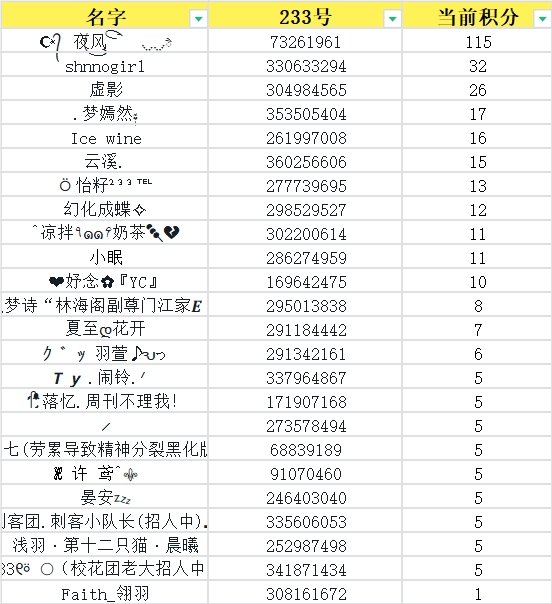 【内测积分排行】