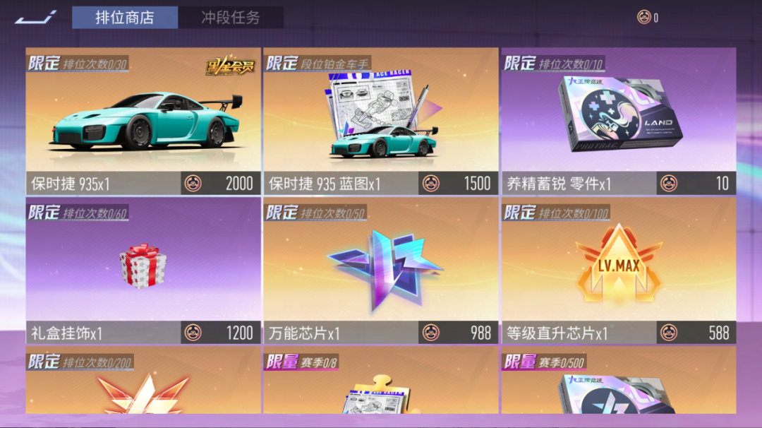 本期排位赛的奖励一如既往的丰厚,除大量的升级材料外,兑换商店还将限时上架车辆:保时捷 935及对应的升级道具,还有全新进阶改装件“礼盒挂饰”。