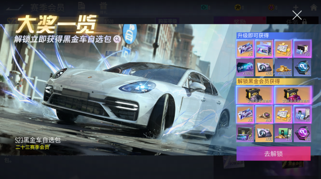 『赛季会员』S23赛季会员强势登场,可以获得城市干扰车保时捷 Panamera Turbo S