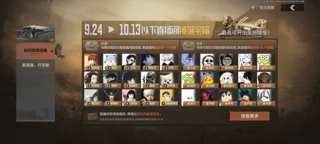 抽取到的宝箱将通过游戏邮箱发放,前往游戏内活动界面开启,即有机会开出大金及对战物资,最高可开出金狮雕像!