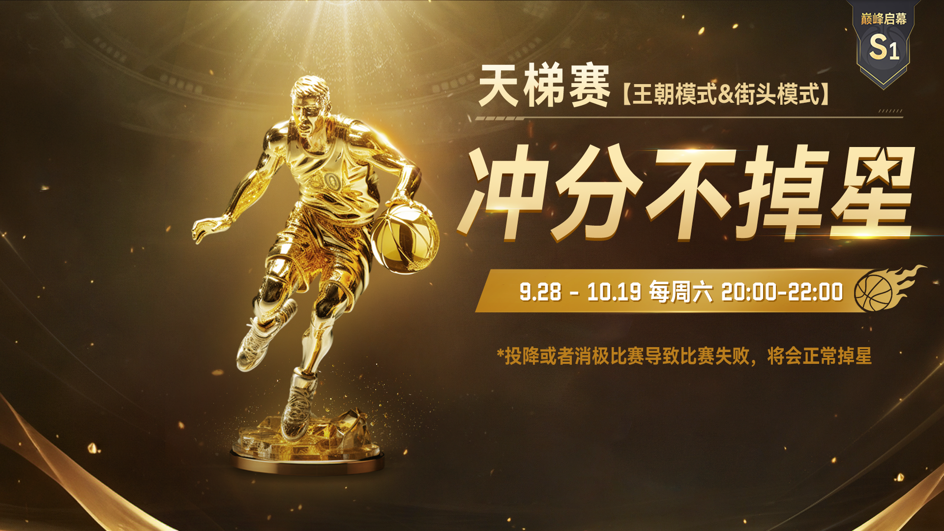 活动期间,每周六20:00-22:00将开启排位积星数保护,天梯赛免除失败扣星惩罚!