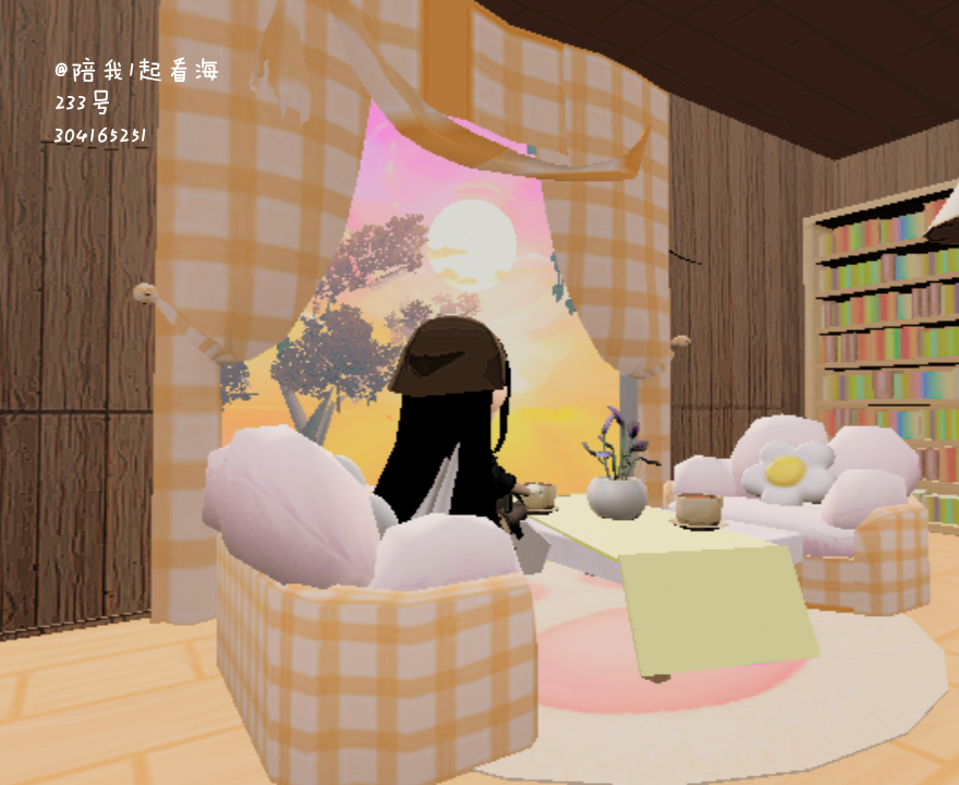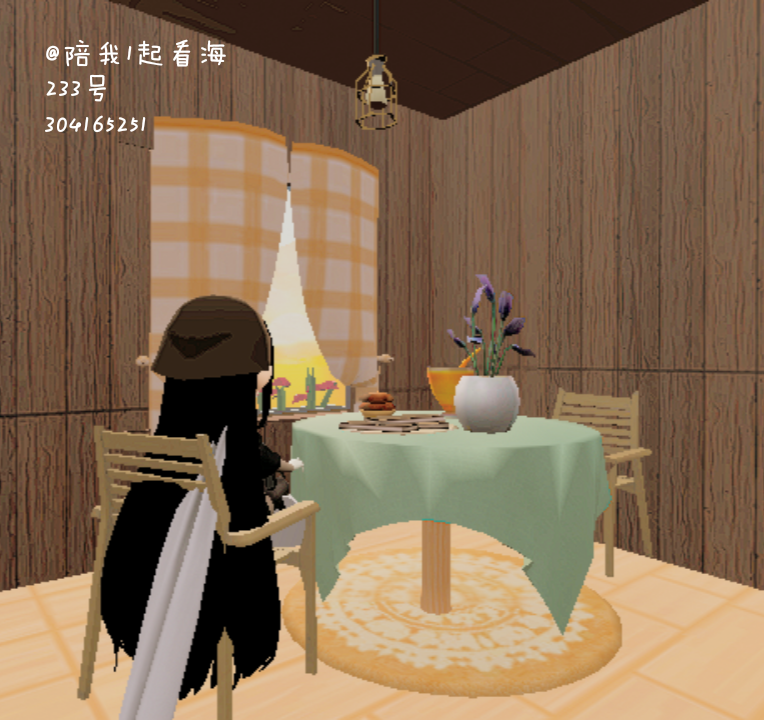 第一个,是在外面的一个打卡地,也是很好看滴,233里没有可以坐的秋千和椅子只能用动作了(找到动作框里的盘腿坐)