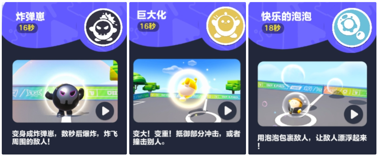 ②巨大化:蛋仔会变大变重,同时移动速度会稍有减慢,可以抵御住部分冲击,也可以撞飞别人。