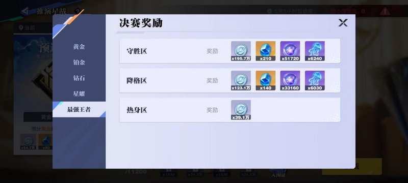 在推演星战中,可以通过挑战高分来晋升,段位越高,每次结算的奖励也就越高。