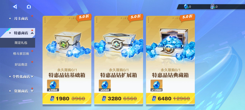 在特惠商店里,也有各种礼包,包含超多晶钻,不容错过!