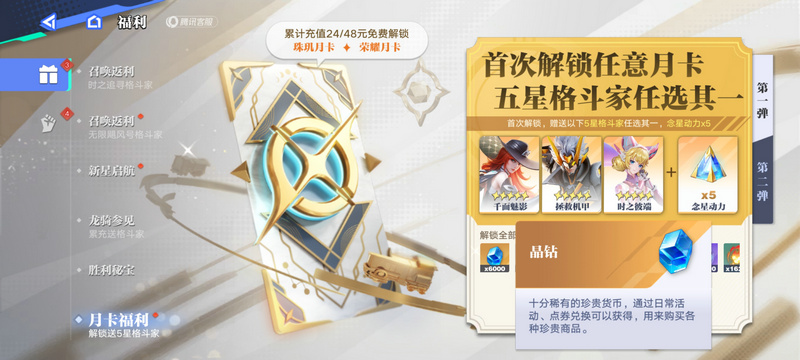解锁月卡即可在30天内领取多达6000晶钻