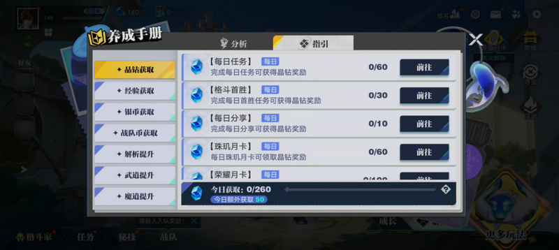 由于破晓中获取晶钻的途径很多,可以点击右下角【成长】中的“变强”按钮,然后在指引页面,查看收集晶钻的各种方法,滴水不漏!