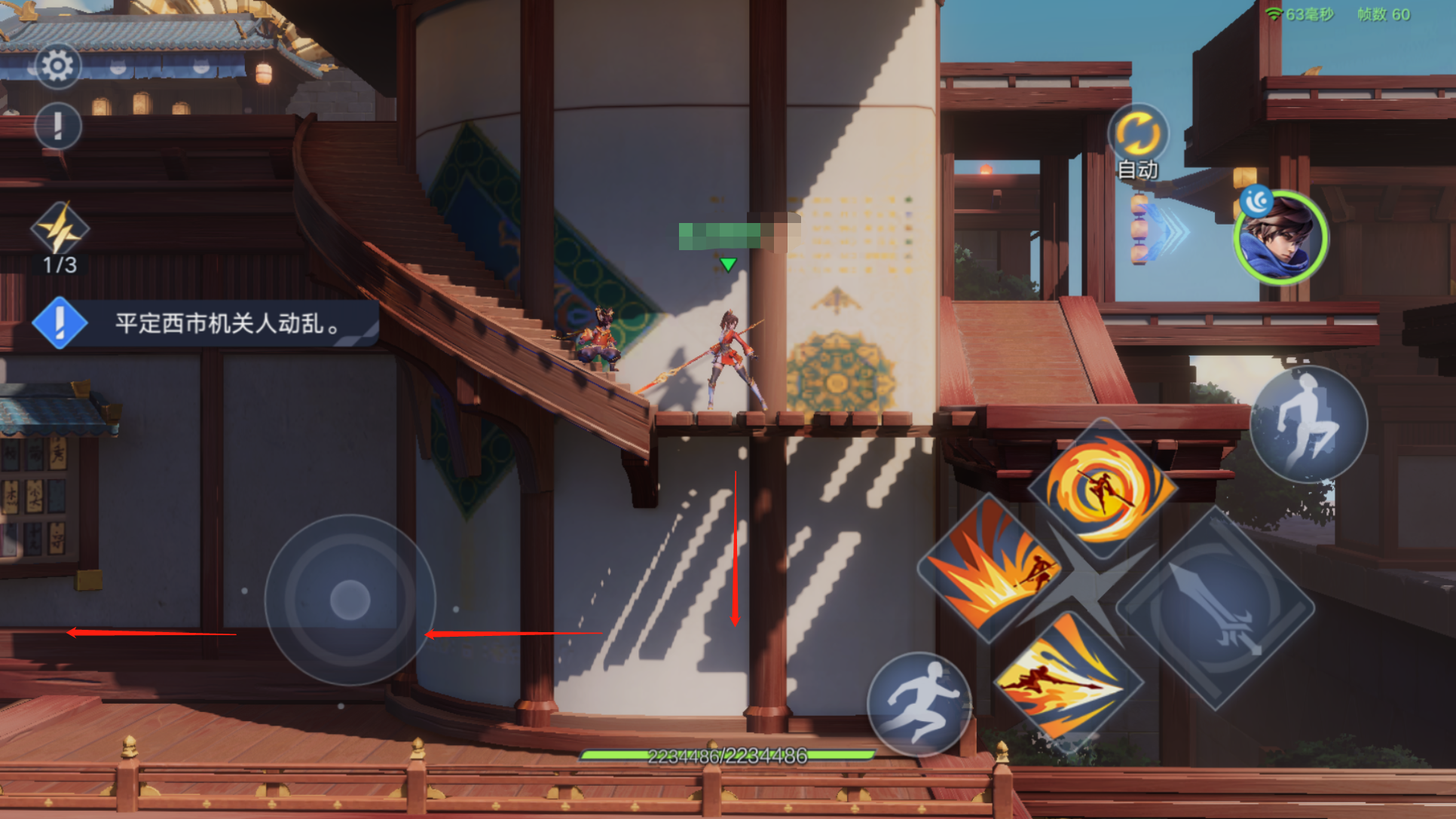 擂台场景跳跃上擂台向前走,通过跳跃到擂台旁边的浮台可获得碎片;