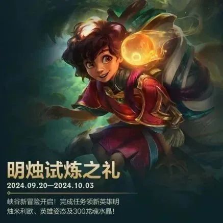 奖励:新英雄明烛 米利欧,姿态-托腮,龙魂水晶*300
