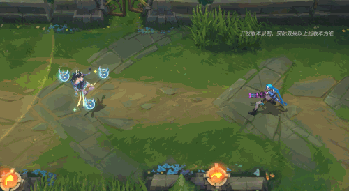 辛德拉幻化出一颗暂存的小精灵法球,小精灵眨着眼,十分俏皮~法球可被自身其他技能操控,当法球爆破时,金蓝相间的十字星绚丽夺目,并对敌人造成伤害。