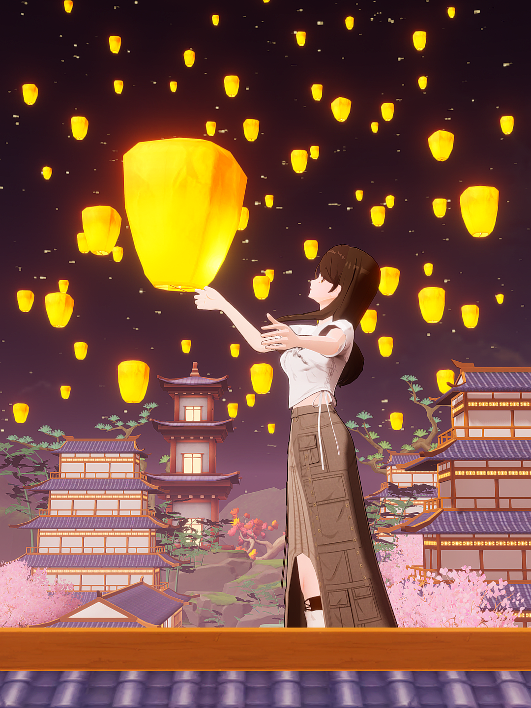 中秋节放明灯平平安安隧岁