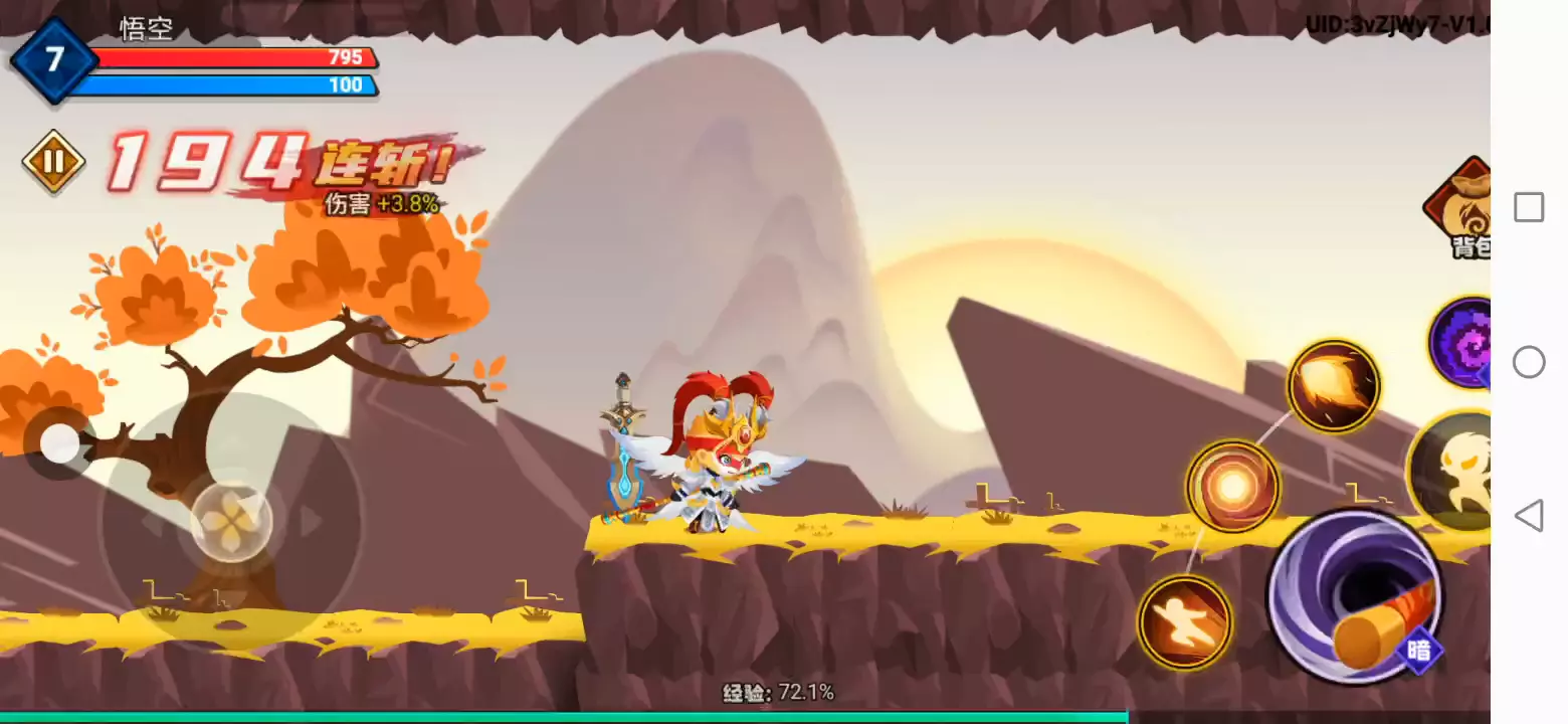 这是一款西游题材的闯关类游戏,玩家将在游戏中扮演猴哥的角色,经历五指山、黑风山、车迟国等不同场景和难度的关卡,途中一路抵挡黑熊精、牛魔兽、野鸡等各类神兽的追击,一边获得各种技能加成,最终击杀关卡boss完成通关挑战