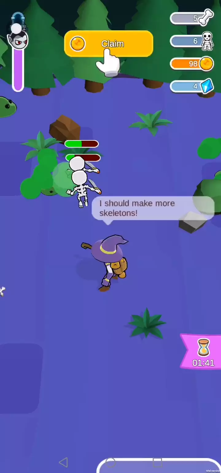 -墓地大亨是一款基于商业模拟和战斗策略的休闲游戏。 -玩家可以在沼泽中挖掘骨头或鱼,然后用它们换取金币,打造属于自己的骷髅兵。吸血鬼会突然入侵墓地。所以玩家需要在吸血鬼和史莱姆到来之前做好战斗准备。战争结束后,他们会掉落丰富的宝物! - 探索墓地,用沼泽骨头盖房子,制造骷髅士兵,把这里变成一个甜蜜温馨的家