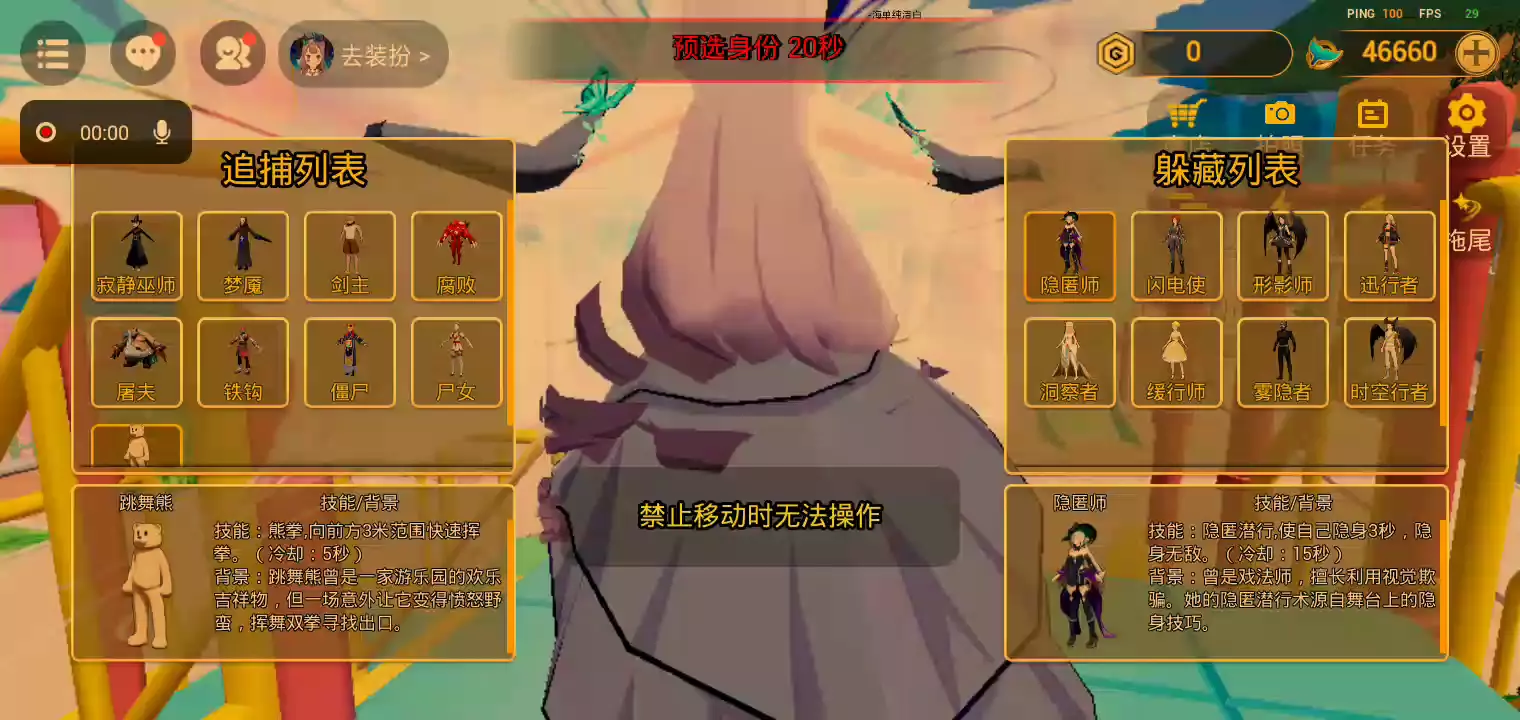 在《幼稚园躲猫猫》中,玩家将体验到一场跨越时空的激烈对抗。游戏设定了两个对立的角色阵营:躲藏者和追捕者。躲藏者们拥有各种超能力,如任意门、烟雾弹、延缓术等,可以利用这些技能躲避追捕者的追击。而追捕者则是一群怪异的生物,有着各自独特的追击能力,如熊拳、爪击、螺旋斩等,他们的目标是找到并捕获所有的躲藏者。 在游戏中,玩家可以选择扮演躲藏者或追捕者,通过巧妙运用角色的技能和策略,来击败对手或逃脱追击。躲藏者们需要尽可能地利用地形和技能来躲避追捕者的搜索,而追捕者则需要猎取所有躲藏者,不留一丝遗漏。 《幼稚园躲猫猫》融合了动作、策略和悬疑元素,带给玩家一场紧张刺激的角逐之旅。你准备好挑战自己的反应速度和智慧了吗?快来加入这场超能力对决,展现你的技能,决出胜负吧! (也欢迎体验幽灵谷地图的同类游戏——超能躲猫猫)