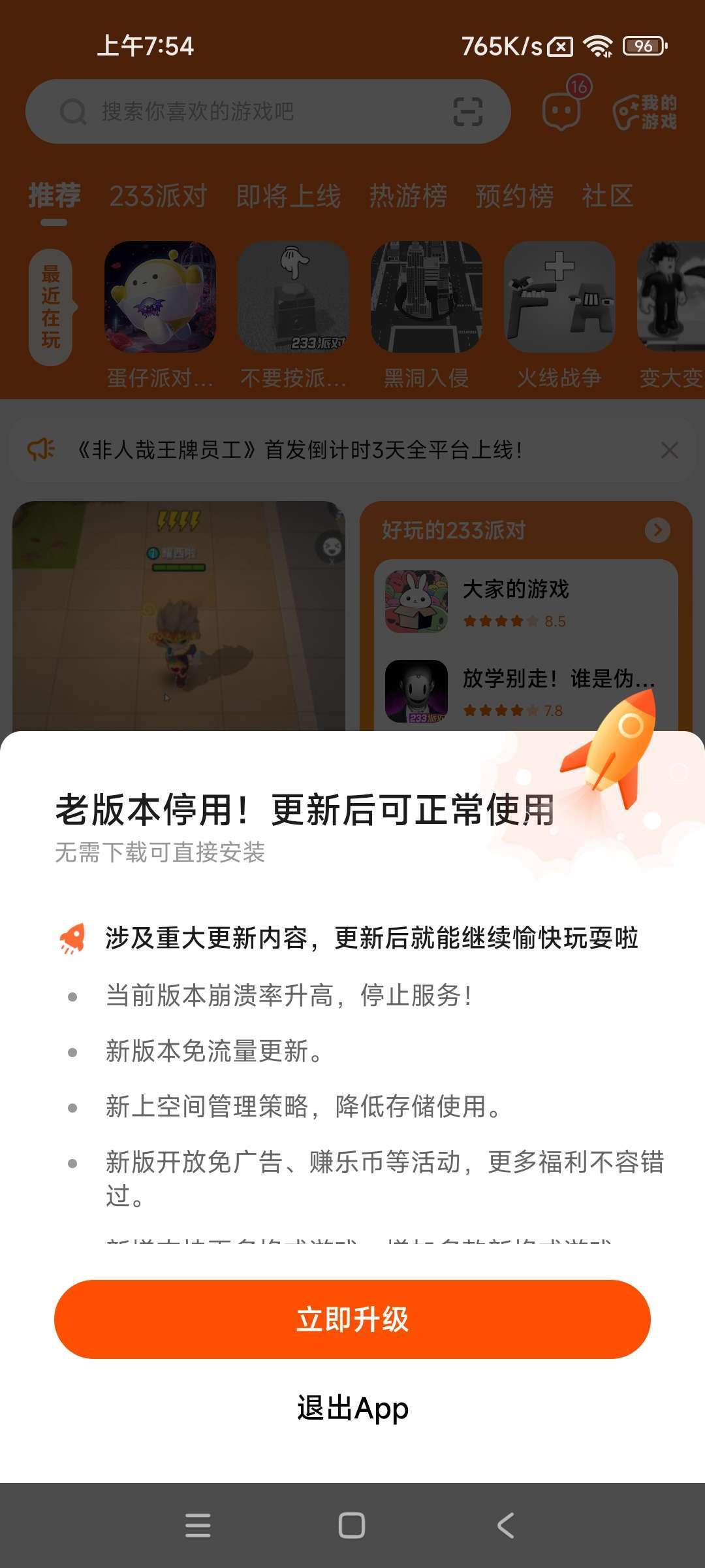 家人们233乐园等不了了现在他这么升级啊我现在是要玩游戏就必须将它删除,重新下载然后玩蛋仔很麻烦要下