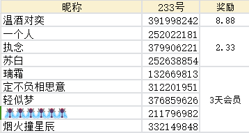 随机抽取3位,送出233乐币