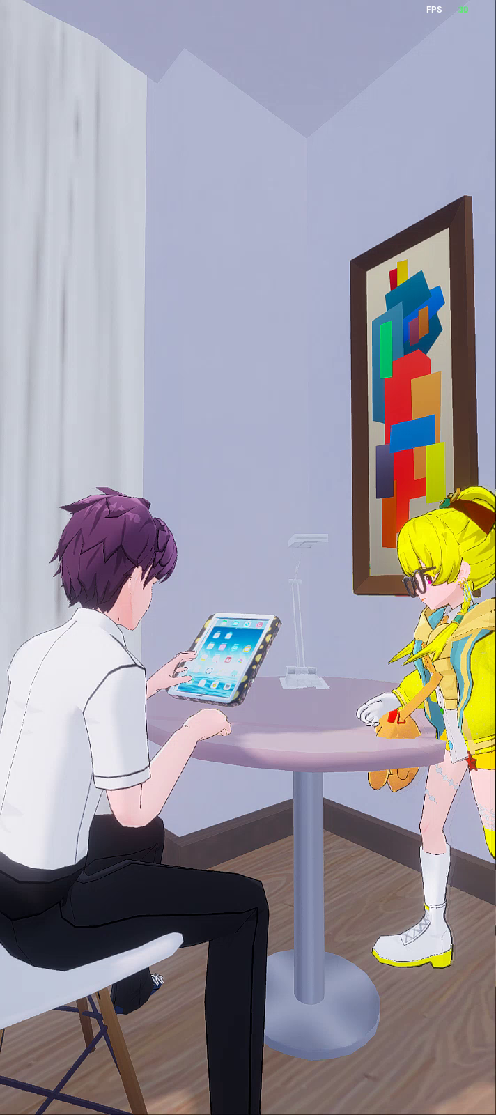 和好友一起玩。(很开心)