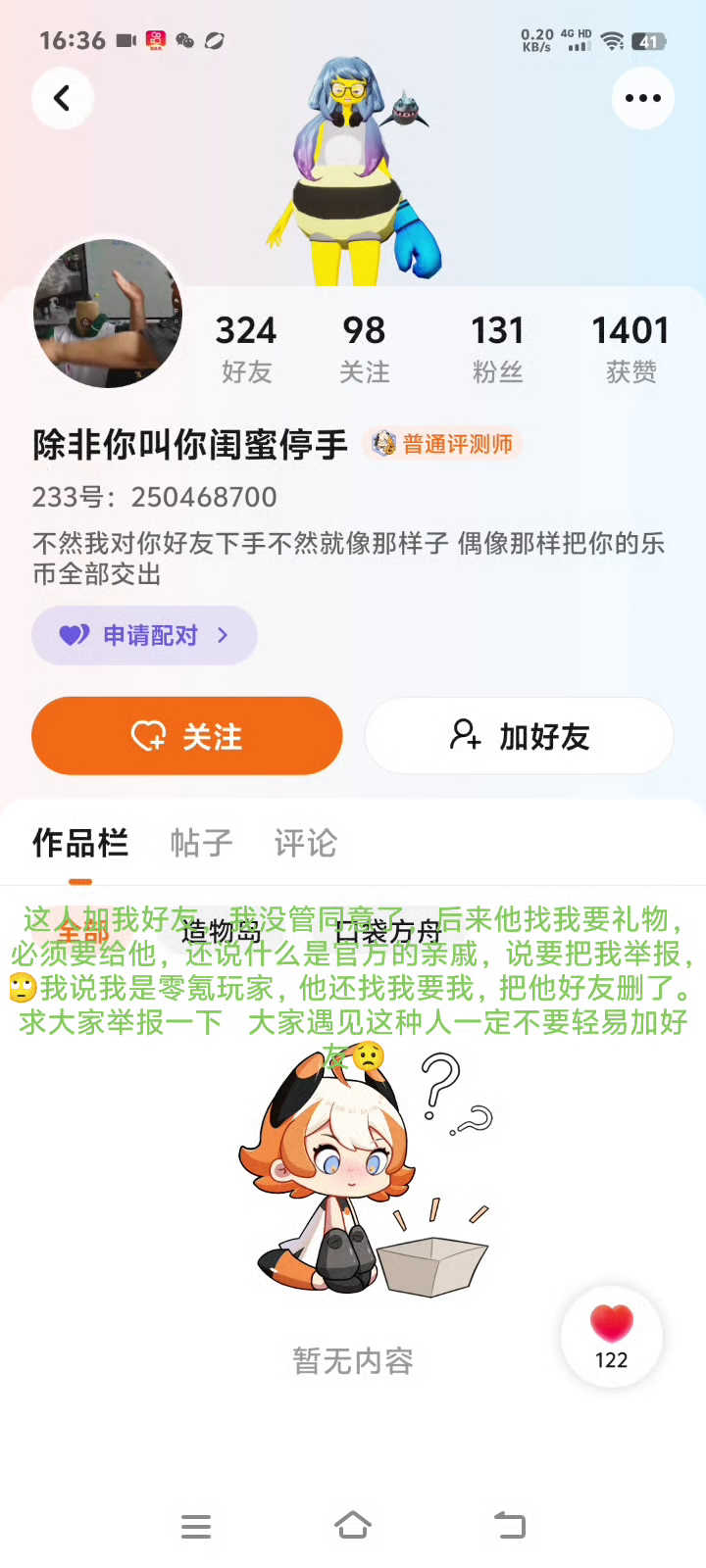 上面有文字请仔细看,希望大家举报一下 不要轻易加别人好友 点个赞发送给更多人看吧😬