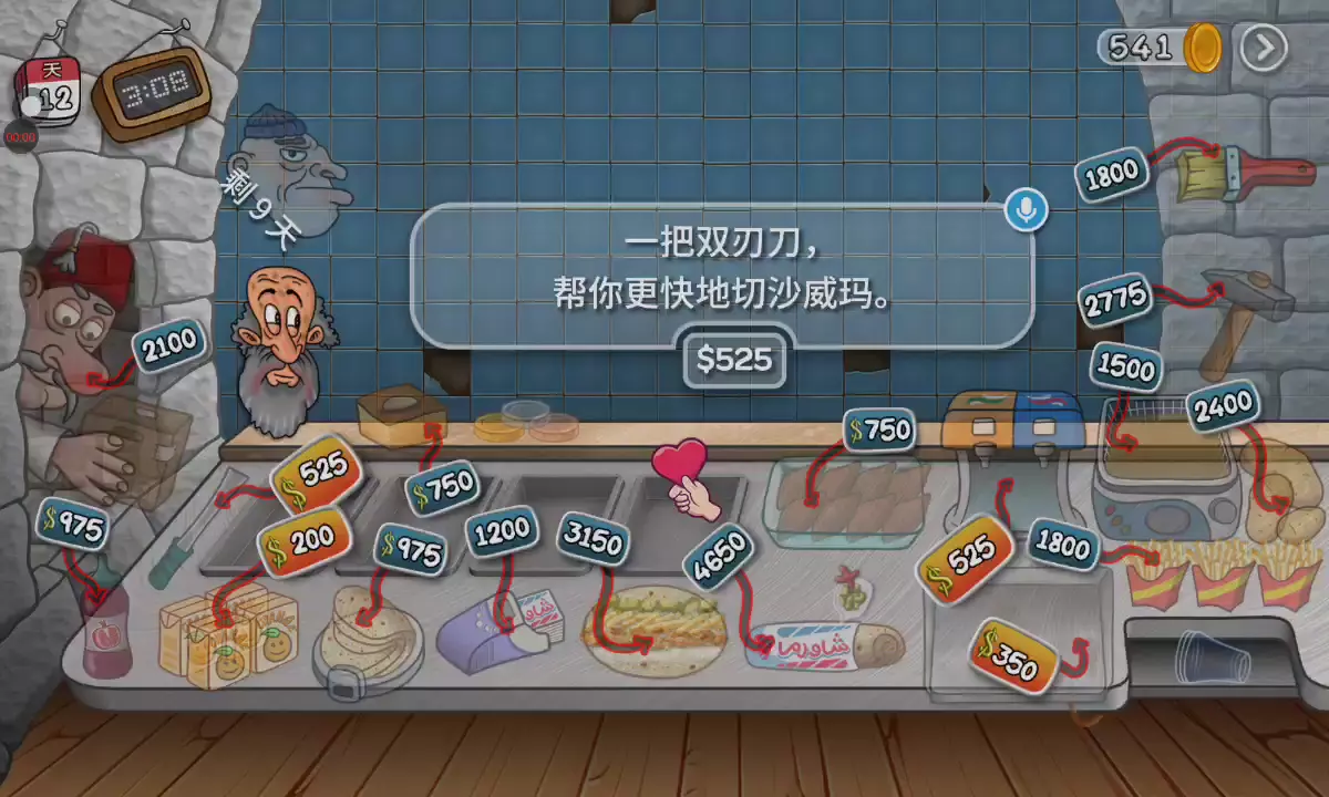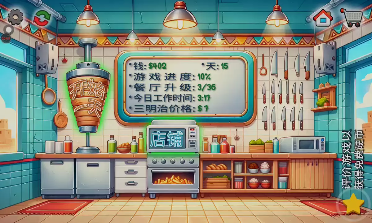 【更新日志】 1. 新的德文歌! 2. 重置保存游戏进度的方法。 3. 三明治的价格写在了黑板上。 4. 以更高的价格出售沙威玛! 5. 更少的广告。 沙威玛传奇:真正的沙威玛体验! 你是否曾经想过经营自己的沙威玛餐厅是什么样的感觉?沉浸在沙威玛传奇中,这是一款最新且最激动人心的烹饪游戏,让你进入美食世界。精确地完成顾客的订单,让你的餐厅繁荣发展。 升级你餐厅的各个方面,从最新鲜的食材和最美味的沙威玛食谱到装饰和先进的厨房设备。与竞争餐厅一较高下,争取成为城里最好的沙威玛大厨! 游戏特色 - 提供你的语言版本:游戏完全提供中文版本,包括语音和文字。 - 有趣的卡通动画:享受将你的沙威玛餐厅变得生动的动画。 - 令人兴奋的游戏玩法和无尽的挑战:享受令人兴奋的游戏玩法和无尽的挑战。 - 逼真的模拟:体验设计得尽可能接近真实餐厅的游戏中的沙威玛大厨的生活。 - 真实的沙威玛准备:从烤架上切下沙威玛并真实地包裹三明治。 - 全面的升级:用顶级设备和装饰提升你的厨房,加快服务速度,让顾客满意。 - 可定制的沙威玛:让顾客根据他们的喜好定制他们的沙威玛三明治。 - 多样化的顾客基础:为无数的顾客服务,每个人都有自己的沙威玛偏好。 你能登上顶峰,成为最终的沙威玛传奇吗?你的技能和奉献精神将是成功的关键。