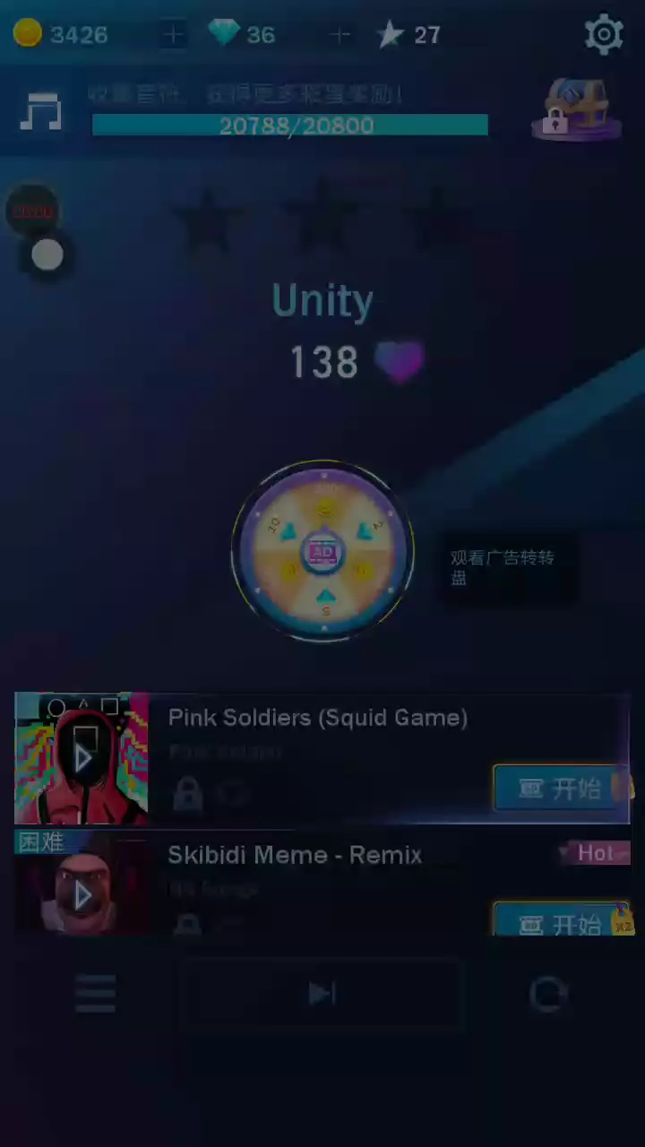 如今,您可以在任何地方的演奏钢琴曲,享受音乐的魅力!不要犹豫,快来在线尝试!这款出色的钢琴游戏为您带来的惊喜比您想象的还要多! 【游戏简介】 1. 这个游戏完美融合了钢琴音乐,您可以感受到冰与火的碰撞,沉迷于世界各地的热门歌曲!感受钢琴曲! 2. 演奏方法:与其他钢琴游戏类似,连续轻敲砖块以跟随音乐的旋律~注意不要错过任何一块瓷砖。向大家证明您的演奏速度和准确性吧! 3. 此外,这里还有众多不同的专辑和各种风格的歌曲。 4. 炫酷的设计和图形。 5. 看似易于操作,其实难以掌握。仅在某些高速歌曲中点击音乐图块可能是一个真正的挑战!