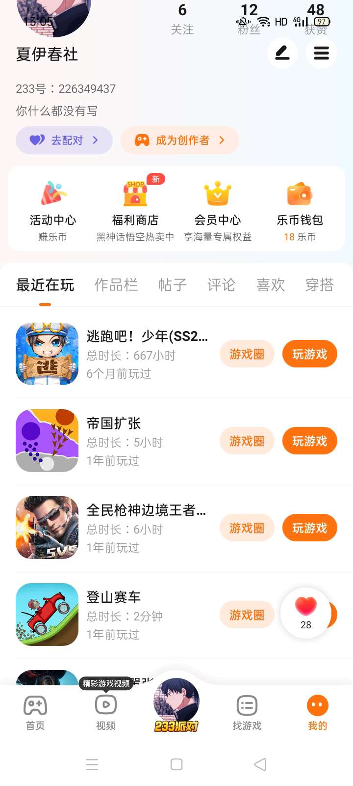 这个是我的小号,已经好久没有玩了
