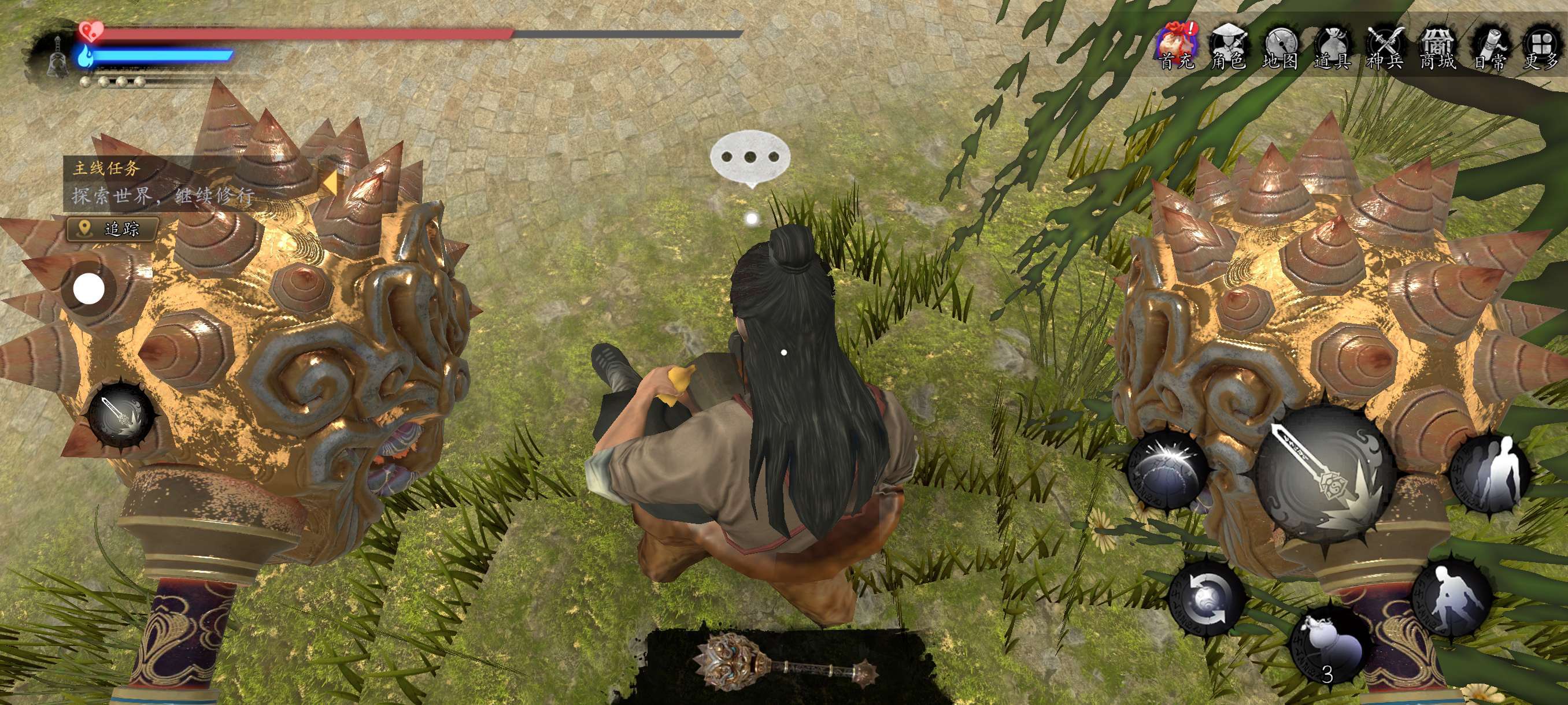 用锤子的跳动可以跳到元清师叔的头上。