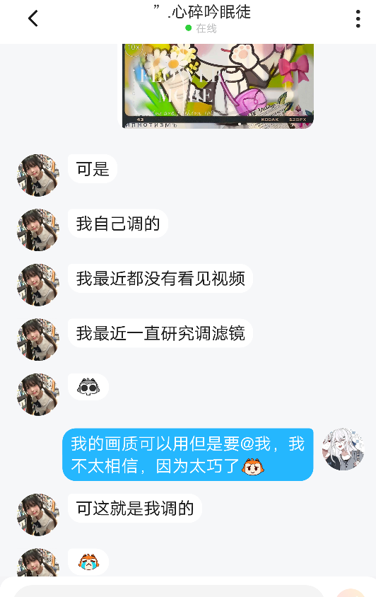 吟眠和我的画质很像滤镜都一样只是我用了调节明眼人都能看出去她一直和我说是她调了没用我的,我不想和她吵了就没再说了。。。太是吟眠太过分了发帖阴阳我.