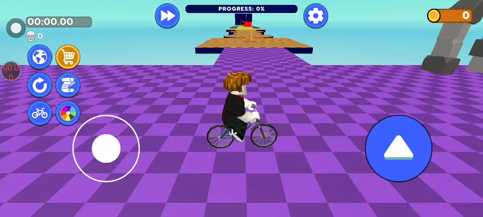 Obby 自行车是一款史诗般的自行车游戏。熟悉许多跑酷 obby,但这次您骑自行车。穿越结合了跑酷比赛和 obby 游戏元素的挑战性障碍赛。通过巧妙地征服每个级别来炫耀您的掌握。 准备好迎接肾上腺素激增的体验,这将考验您的技能、反应能力和决心。您准备好迎接终极自行车挑战了吗? 主要特点: - 车轮跑酷:在挑战具有挑战性的障碍赛道时,体验骑自行车的快感。与步行相比,骑自行车的选择要广泛得多。你可以走得更快,跳得更远。掌握精确跳跃和旋转的艺术,征服每个级别。 - 穿越危险:从一个平台跳到另一个平台,在两个轮子上展示你的跑酷技能。穿越错综复杂的障碍赛道,考验你的精确度和敏捷性。时间在流逝,这是您证明自己是终极自行车大师的机会。 - 各种障碍:准备好征服障碍赛,从危险区和消失的平台,到摇摆的锤子和诈的粉丝。每个级别都是一个新挑战,需要快速反应和战略思维。 - 拥有自己跑酷的多个世界:坚持到底,解锁一个有着新的独特障碍的新世界。 - 检查站系统:通往胜利的道路充满挑战,但不要害怕!我们的检查站系统可确保跌倒并不意味着结束。重新站起来,擦掉身上的灰尘,从最后一个检查站继续比赛。
