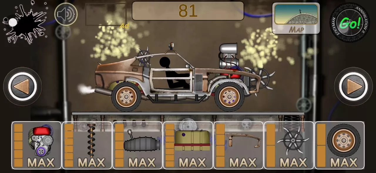 基本上所有车都有了。我就是说。第2个图你是怎么过的?我那是侥幸不?我用每个车都试过了,飞过去不是散架就是死。飞过来火柴人还不赚钱。