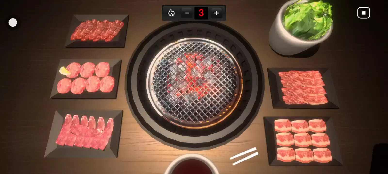 你饿了吗?想来点日式烧肉吗?来玩这个游戏吧!简单易上手!模拟吃日式烧肉的游戏,绝对零卡路里!放轻松,假装在吃日式烧肉!【游戏功能】这个游戏非常简单,只有1种模式,但可以搭配不同的玩法。1、普通玩法没什么…只是为了好玩或者和朋友聊天。2、配一碗米饭的玩法如果你饿了,你可以享受着模拟烧肉,然后吃你的米饭。(你可以加酱汁或盐来增加味道。)3、配一瓶啤酒的玩法在模拟烧肉的气氛里享受你的啤酒,会让你很放松。4、配一盘沙拉的玩法你想节食吗?别担心,这个游戏会让你的沙拉味道更好!试试吧!