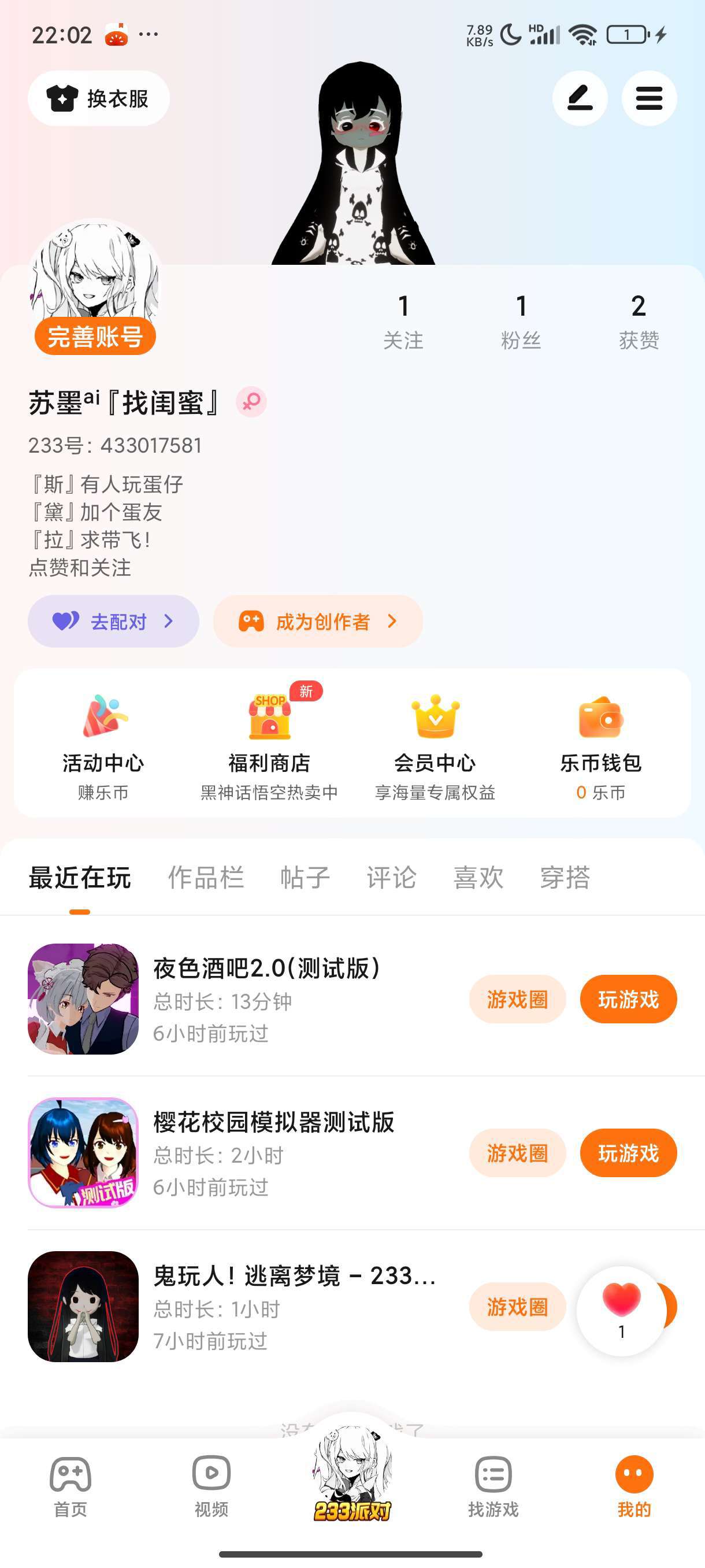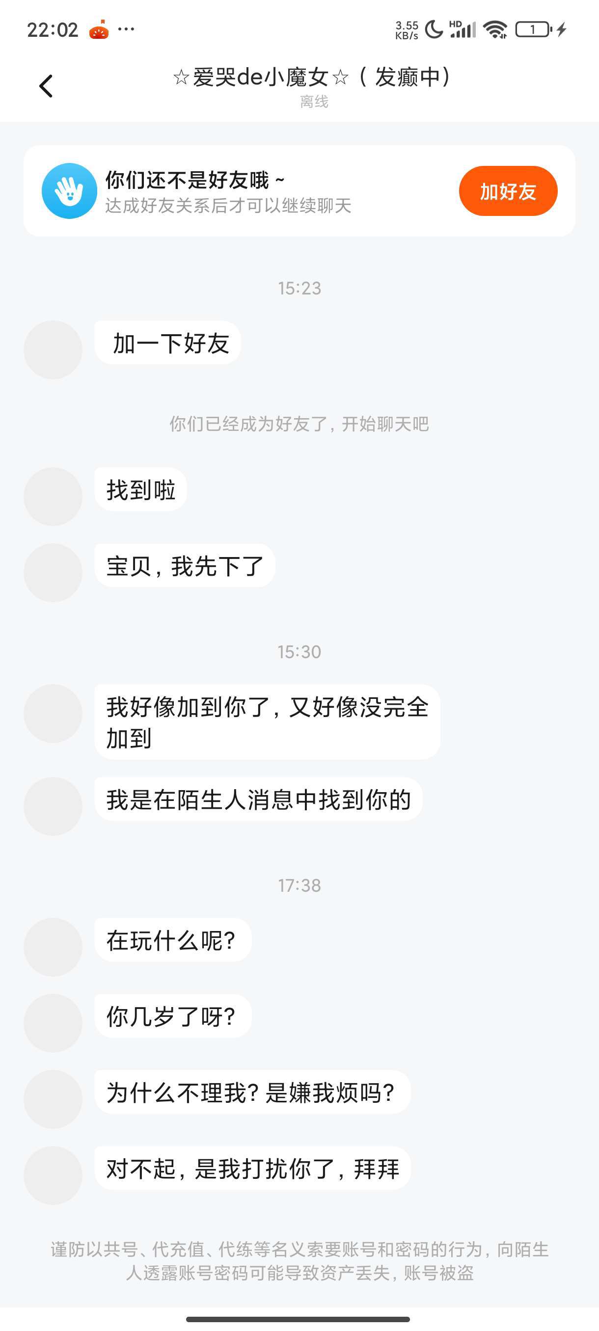交了一个闺蜜。然后后面他跟我发消息,我不知道为什么发不出去。然后因为我在玩蛋仔派对,没看然后就这么了