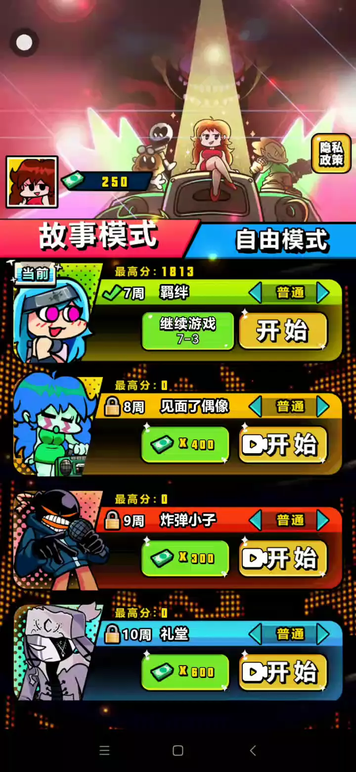 一款音乐游戏,您必须通过射击音乐箭头击败老板。凭借其有趣的旋律游戏和 oldskool 艺术风格,FNF 是一款有趣而具有挑战性的游戏,它将以惊人的体验让您发疯。所以现在就玩,看看 FNF 是否能说服你! 怎么玩:到达得分区时点击彩色箭头,跟随节奏,击败所有敌人,赢得你的尊重并赢得你女朋友的心! 特点: - 容易上手,但很难掌握。 - FNF 整整 7 周和许多频繁更新的 MOD - 真实战斗在线模式。 - 您最喜欢的角色:男朋友,女朋友,Huggy Wuggy,Poppy Playtime 中的 Rainbow Friends,BanBan Garten 中的 Jumbo Josh,我们当中的冒名顶替者,海绵宝宝等 - 各种歌曲类型:在我最糟糕的时候,悬浮,舞猴,... 你觉得你很酷?!那么,让我们来一场音乐大战吧。