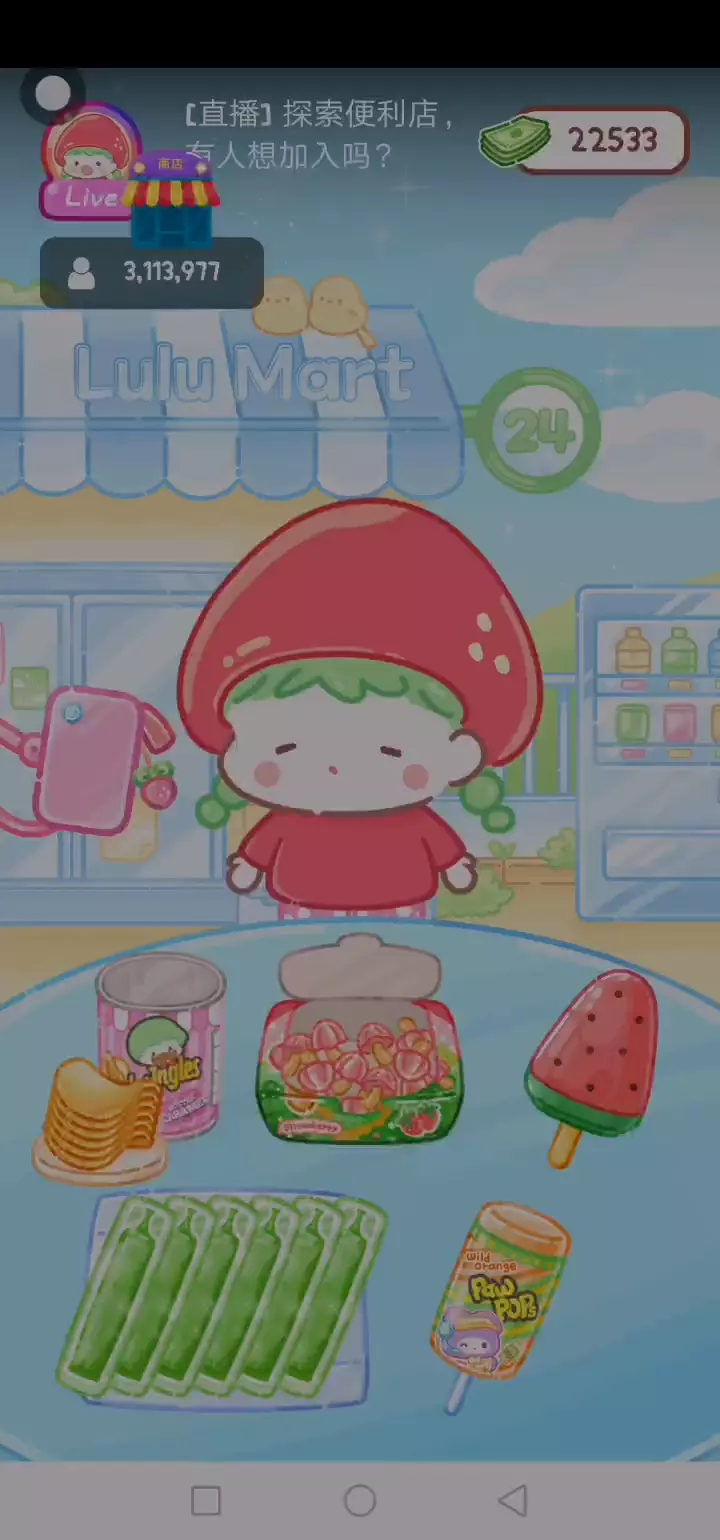 更新宠物!!! 「你进行草莓糖葫芦吃播的话,我就赞助100元。」 「脆口的声音太迷人了(°θ°)」 由于客人都被最近新开的许多糖葫芦店家抢走,曾经号称糖葫芦达人的父母因此卧病在床。 继承父母店面的主角露露开始糖葫芦吃播来宣传店面。 直到成为真正的糖葫芦达人那一天! 「今天我也要开始糖葫芦直播罗!( •o• )」 [串材料] 只有新鲜的水果的话,很难以一名吃播实况主存活下来。还要有松饼、地球软糖、青阳辣椒!利用奇特的材料制作糖葫芦吧。 [裹糖衣] 将材料串满竹签的话,就放进锅子搅动吧。唯有利用达人的秘法,才能裹出又薄又脆的糖衣。 [即时吃播] 咔哒咔哒!今天的吃播也大成功。热烈的聊天内容看起来反应也不错。看来得利用完成观众任务得到的赞助金来买新材料了! 来,准备好了吧?现在就马上挑战成为糖葫芦达人吧!