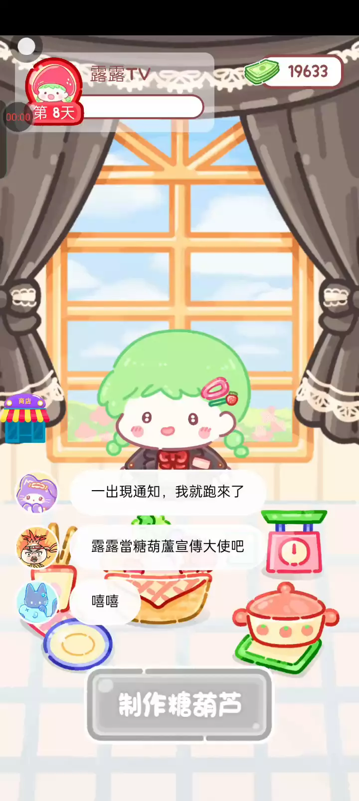 更新宠物!!! 「你进行草莓糖葫芦吃播的话,我就赞助100元。」 「脆口的声音太迷人了(°θ°)」 由于客人都被最近新开的许多糖葫芦店家抢走,曾经号称糖葫芦达人的父母因此卧病在床。 继承父母店面的主角露露开始糖葫芦吃播来宣传店面。 直到成为真正的糖葫芦达人那一天! 「今天我也要开始糖葫芦直播罗!( •o• )」 [串材料] 只有新鲜的水果的话,很难以一名吃播实况主存活下来。还要有松饼、地球软糖、青阳辣椒!利用奇特的材料制作糖葫芦吧。 [裹糖衣] 将材料串满竹签的话,就放进锅子搅动吧。唯有利用达人的秘法,才能裹出又薄又脆的糖衣。 [即时吃播] 咔哒咔哒!今天的吃播也大成功。热烈的聊天内容看起来反应也不错。看来得利用完成观众任务得到的赞助金来买新材料了! 来,准备好了吧?现在就马上挑战成为糖葫芦达人吧!