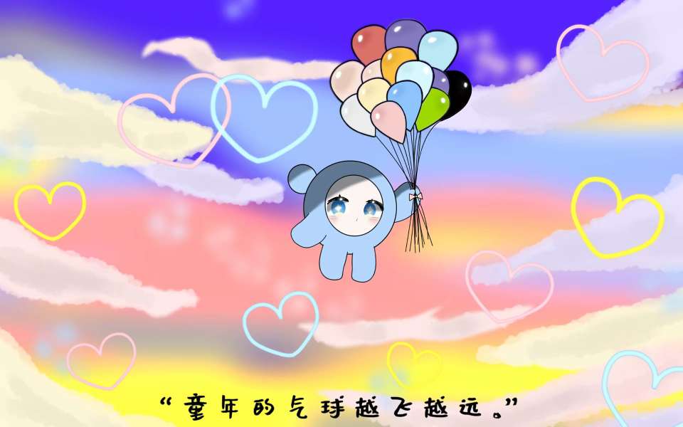 “童年的气球越飞越远。”#绘画